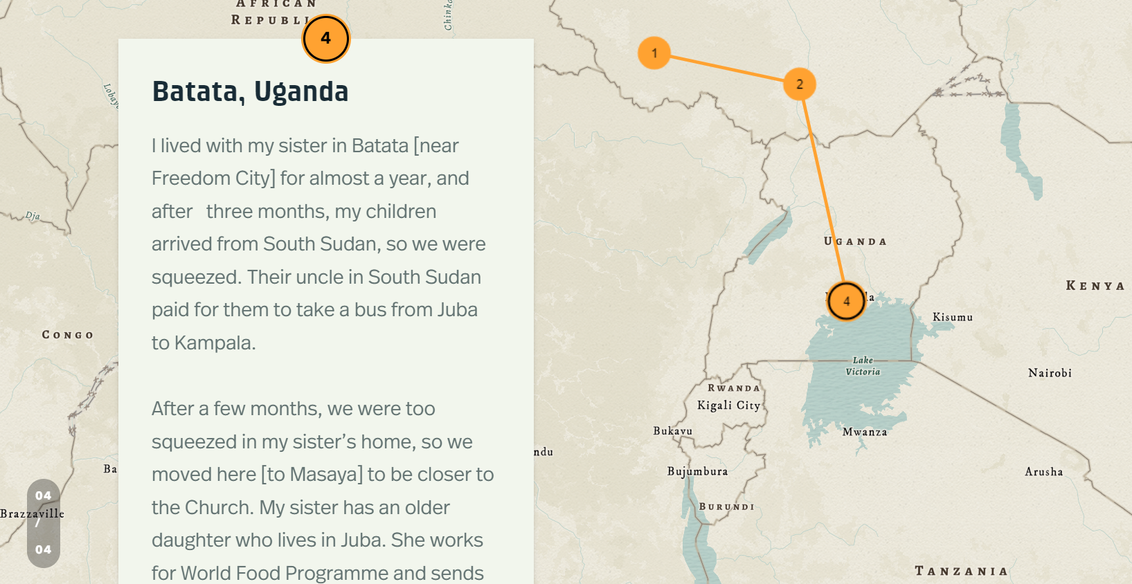 As part of the Journeys Project, which maps the financial biographies of migrants around the world via StoryMaps, this is the story of Grace, who traveled from Western Equatoria in South Sudan to Batata in Uganda to make a better life for herself and her children after the war. Grace spoke to our researchers, detailing her journey through South Sudan and Uganda, where she lives in limbo.